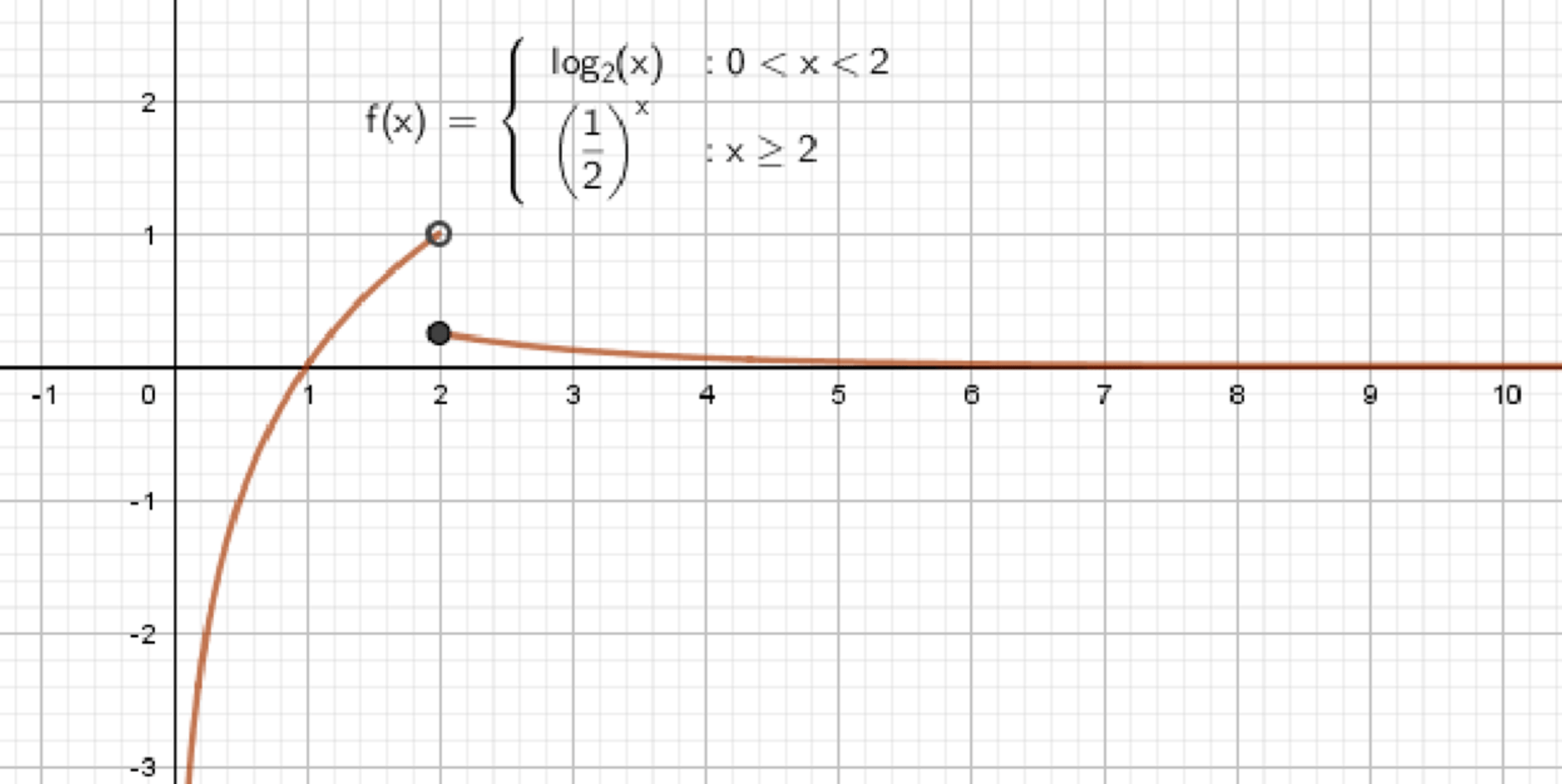 - Функция непрерывна на каждом промежутке, но разрывна в точке