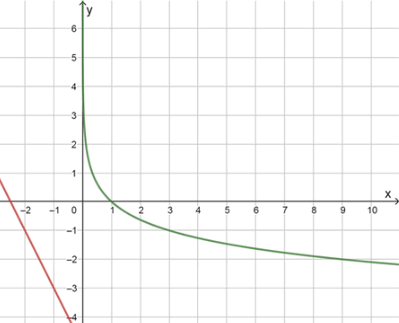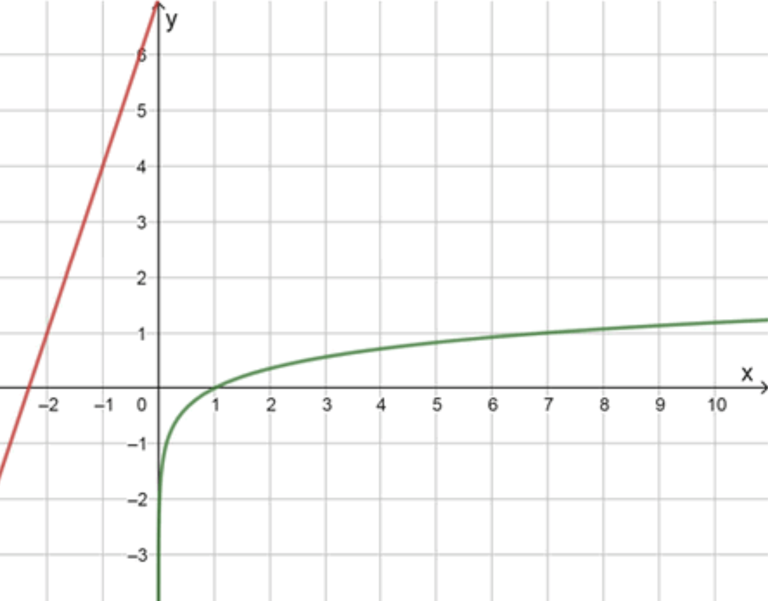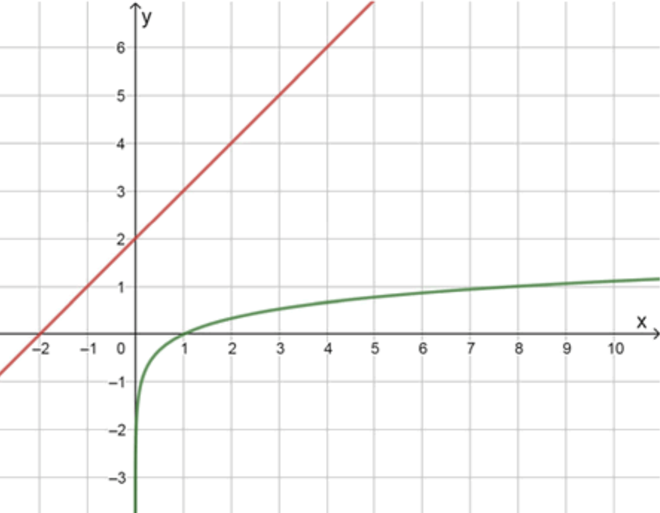 Логарифмическая кривая идёт ниже прямой на всём допустимом интервале