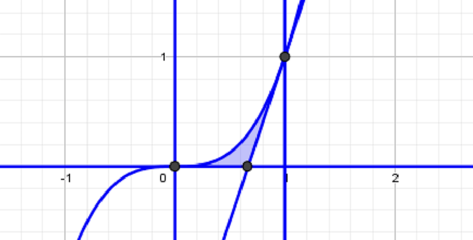 На отрезке от до , график выше обеих касательных.