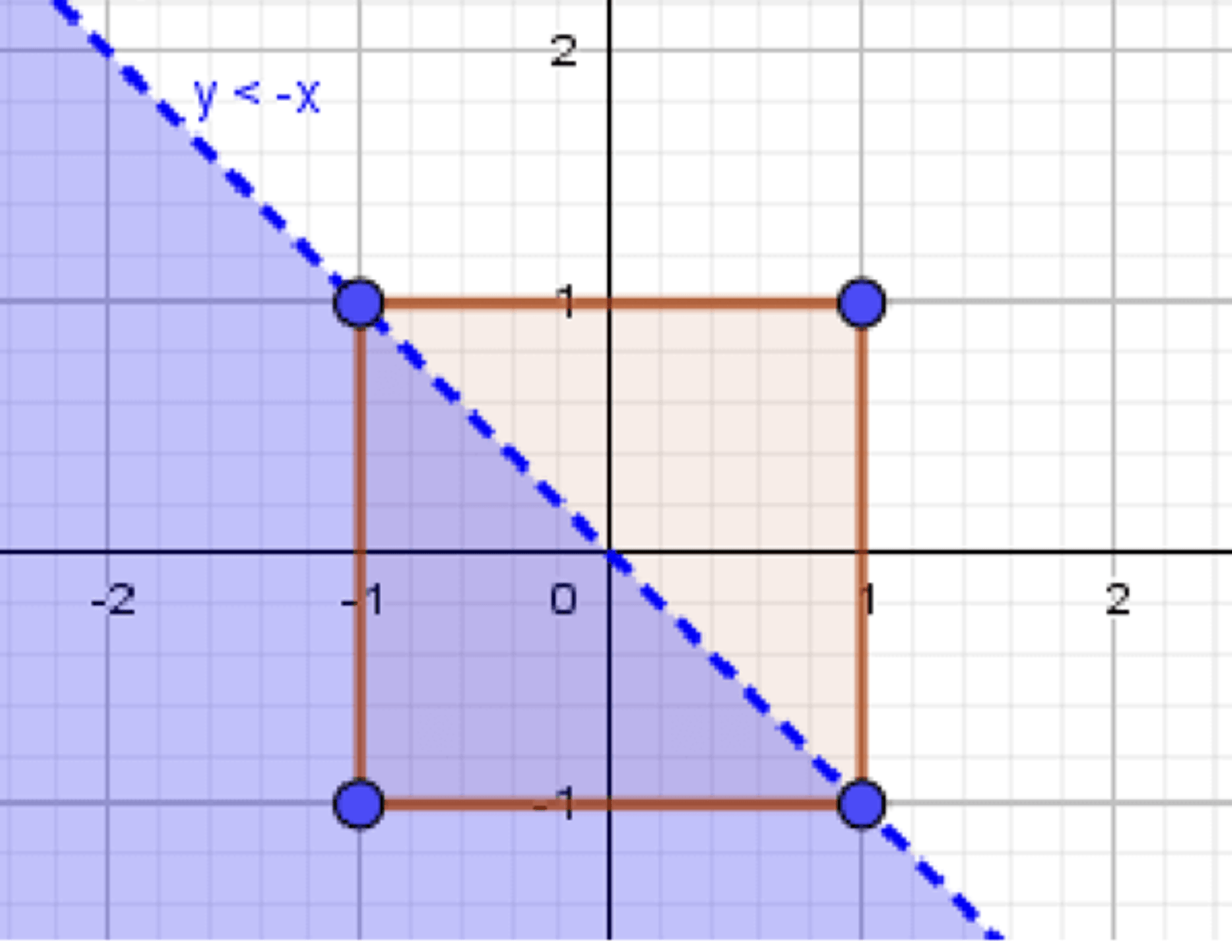 Искомая точка лежит внутри прямоугольного треугольника или :