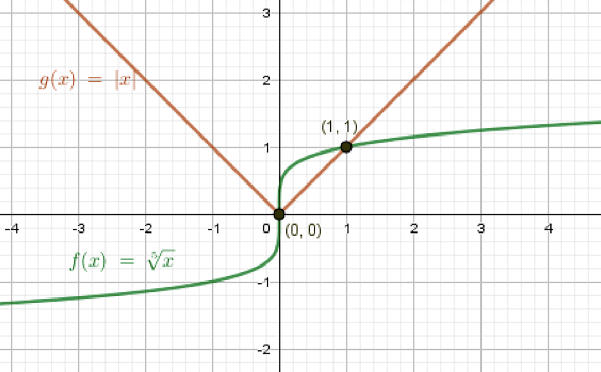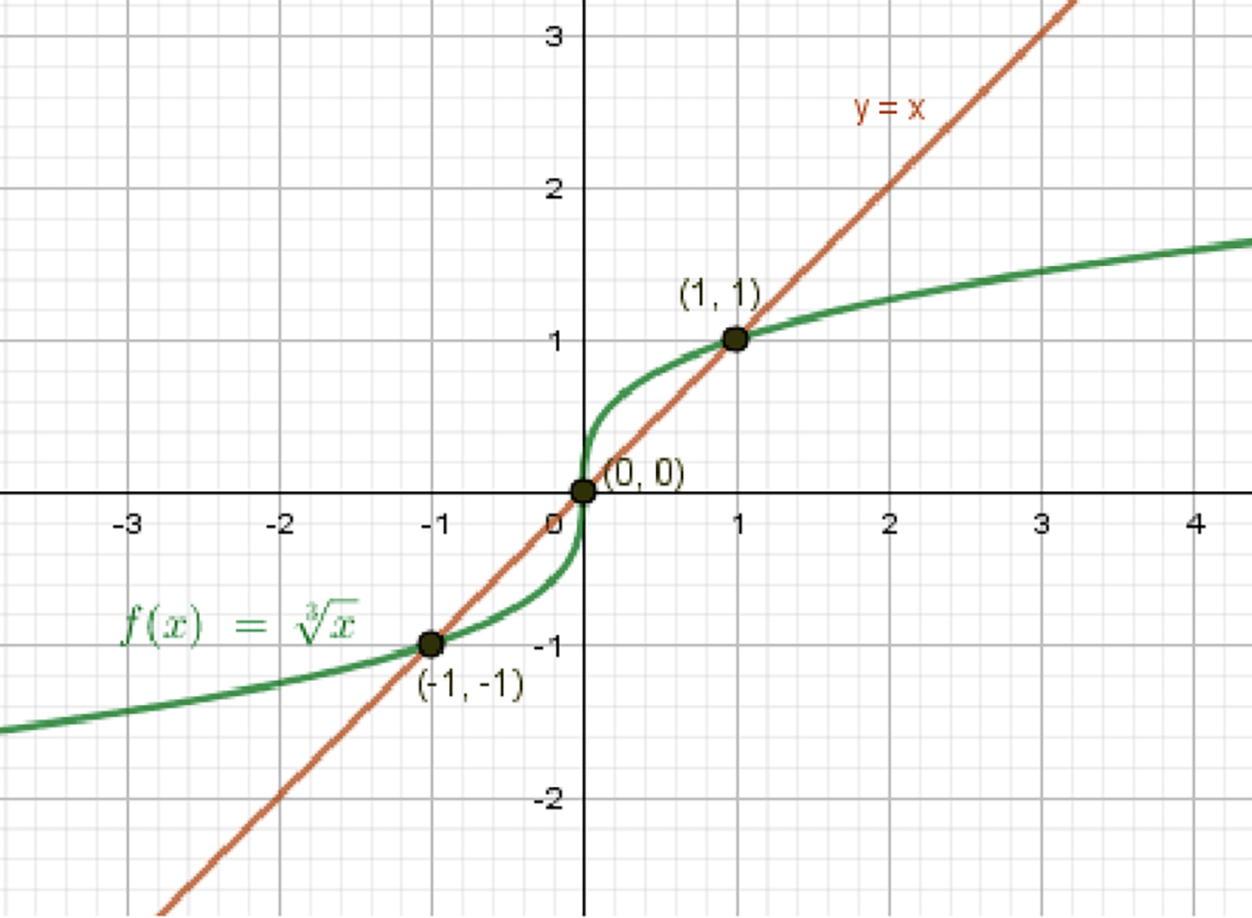 Ищем точки пересечения графиков функций \( y = x \) и \( y = \sqrt[3]{x} \). Такие точки удовлетворяют уравнению:
