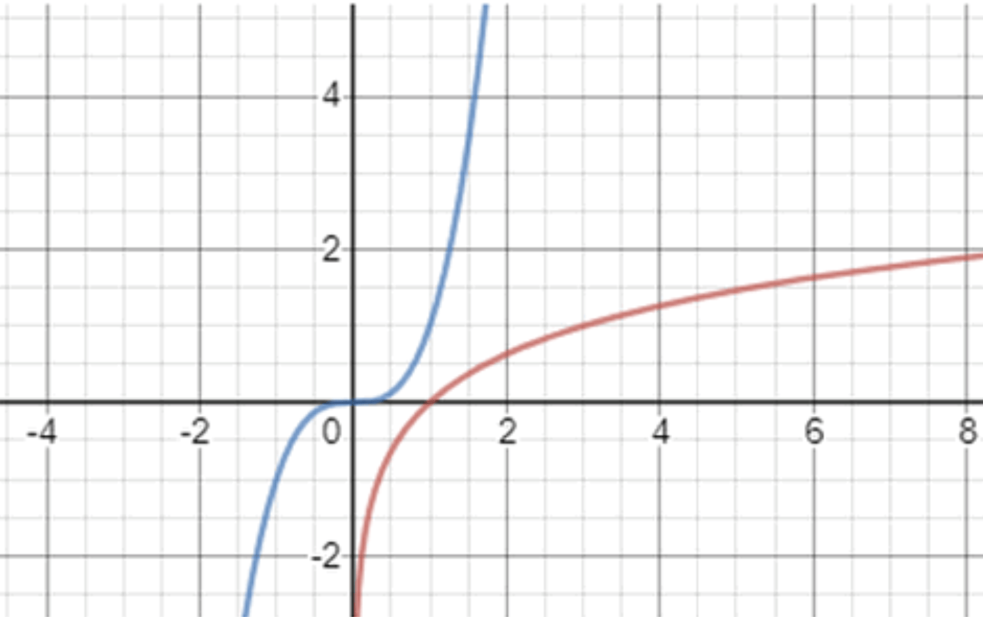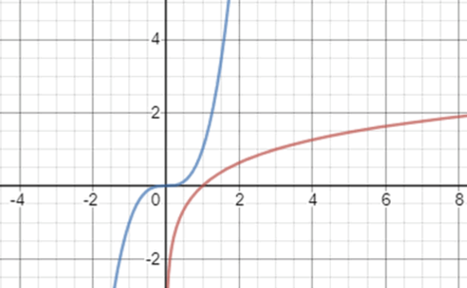 Функция \( y = x^3 \) возрастает быстрее, чем функция \( y = \log_3 x \). Графики не пересекаются.