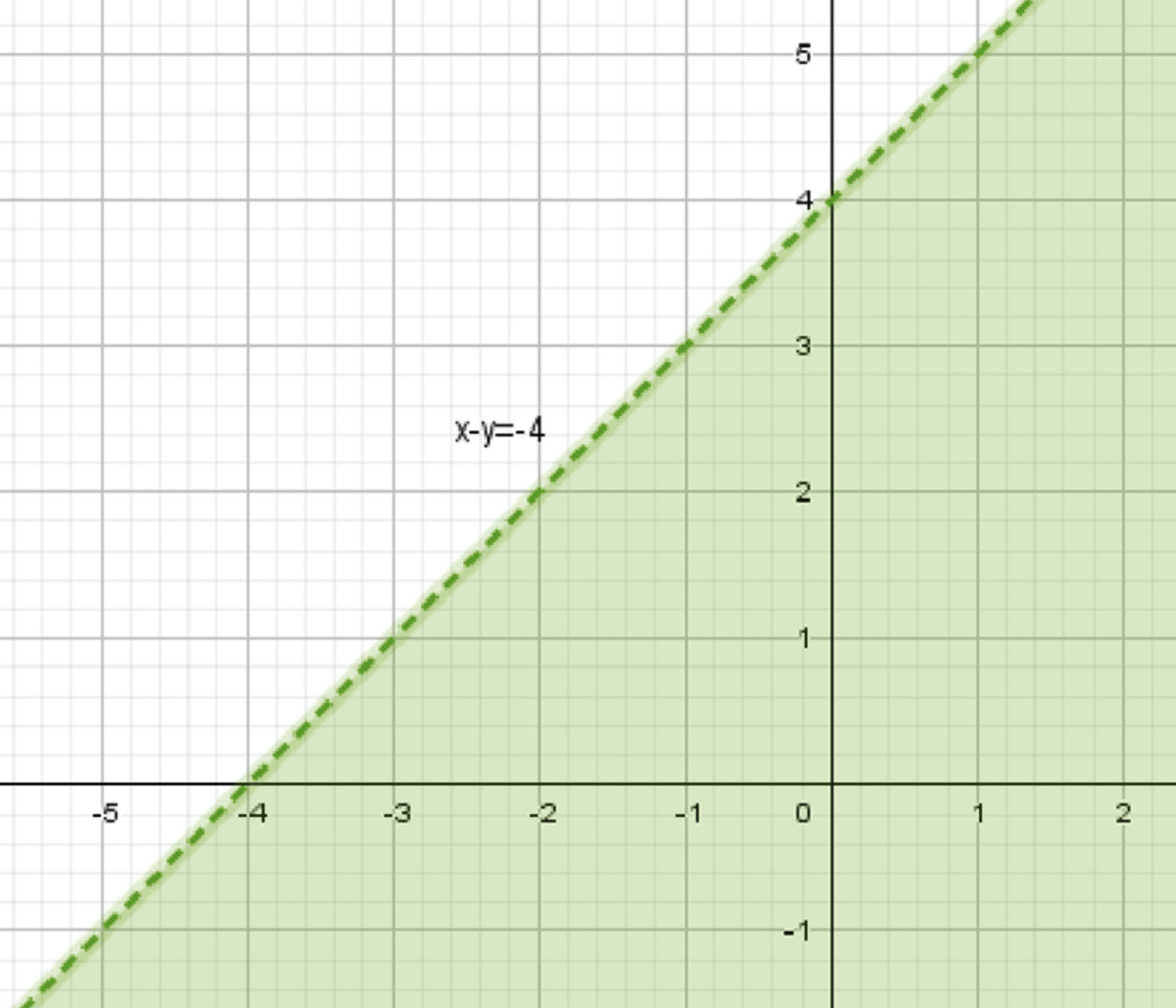 Множество точек: все точки, лежащие ниже прямой \(y = x + 4\).