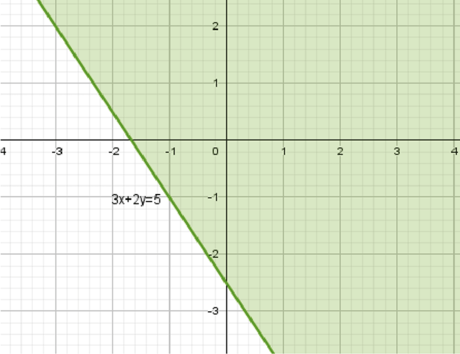График прямой делит плоскость на две области. Так как неравенство \(y \geq -\frac{3}{2}x — \frac{5}{2}\), то искомая область находится выше прямой.