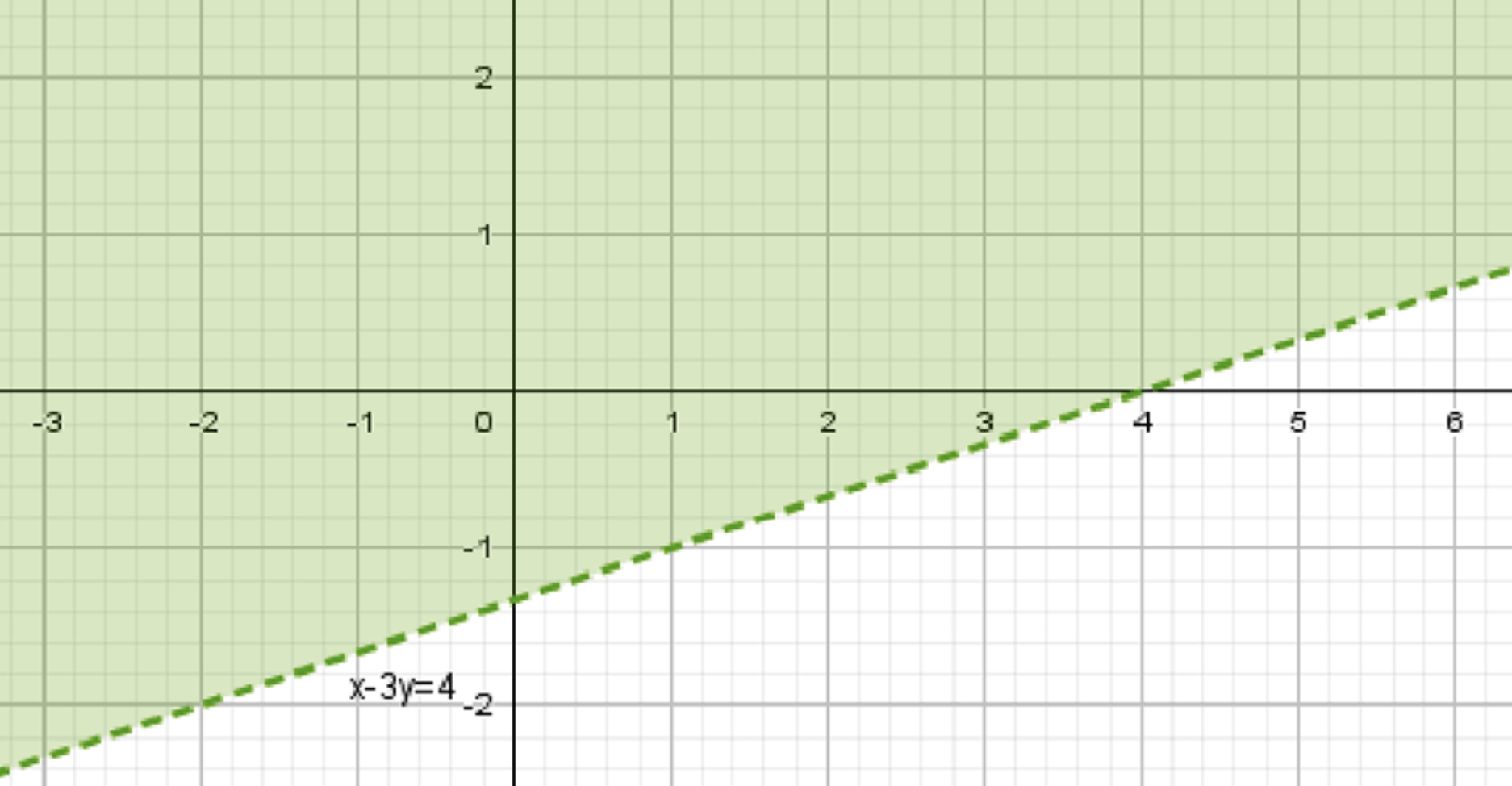 \(y > \frac{1}{3}x — \frac{4}{3}\);