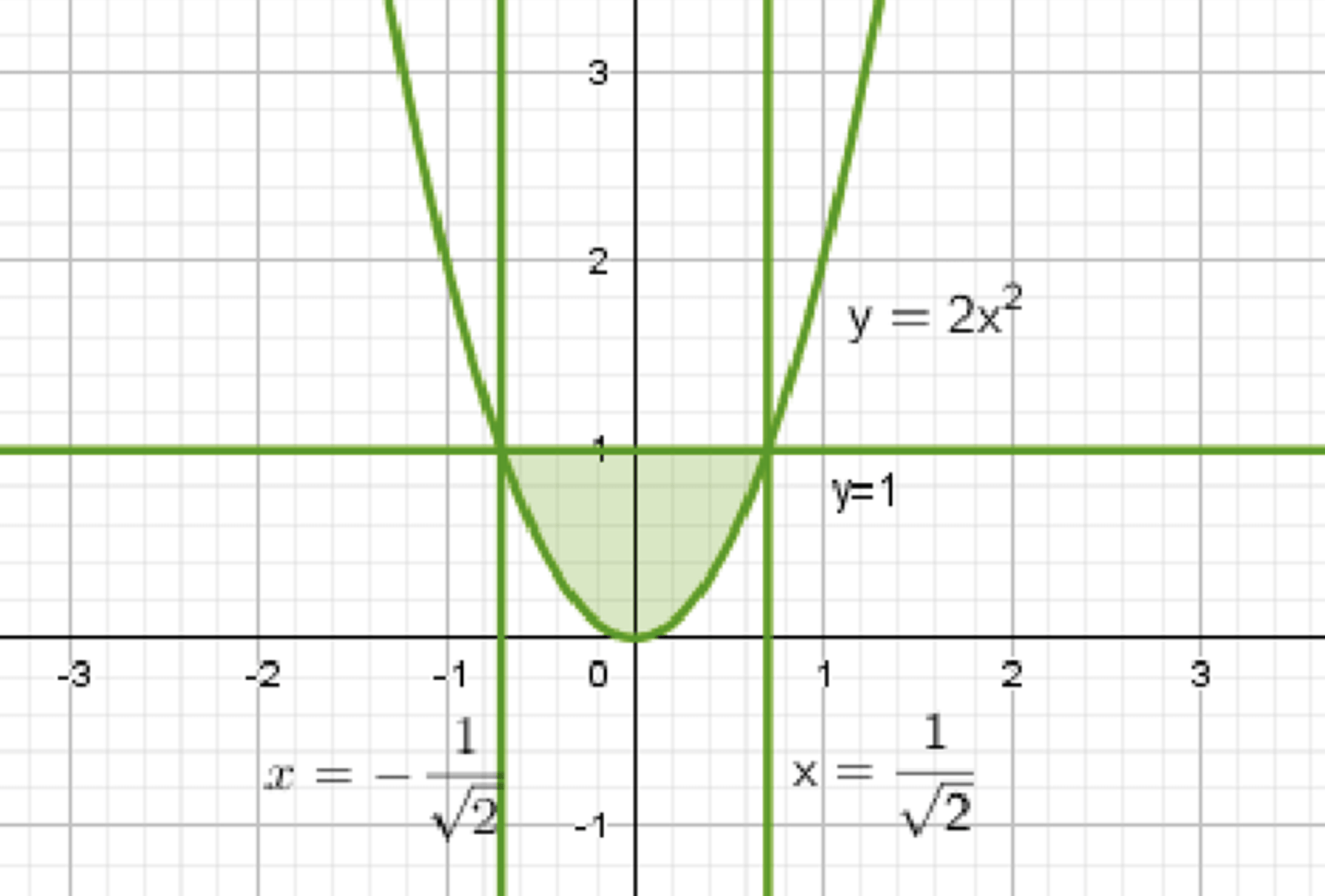 Область решения: пересечение областей выше параболы \( y = 2x^2 \), ниже прямой \( y = 1 \).