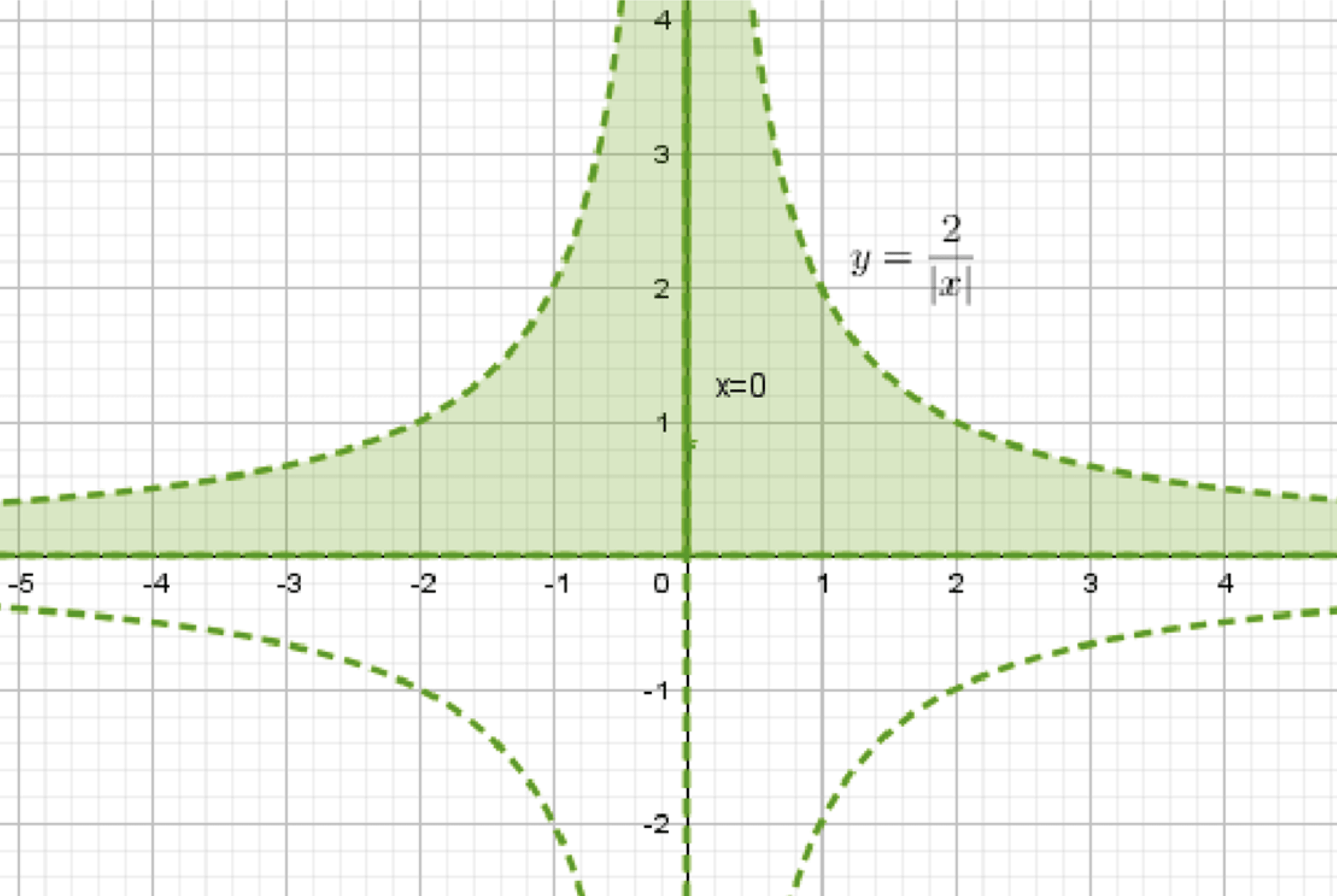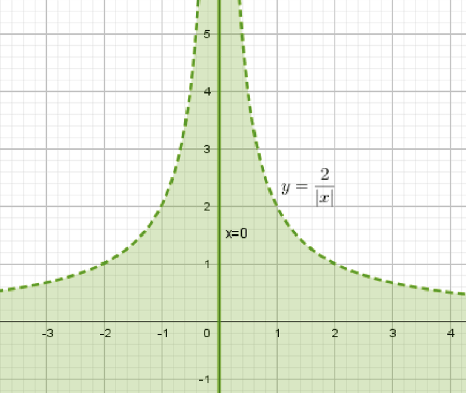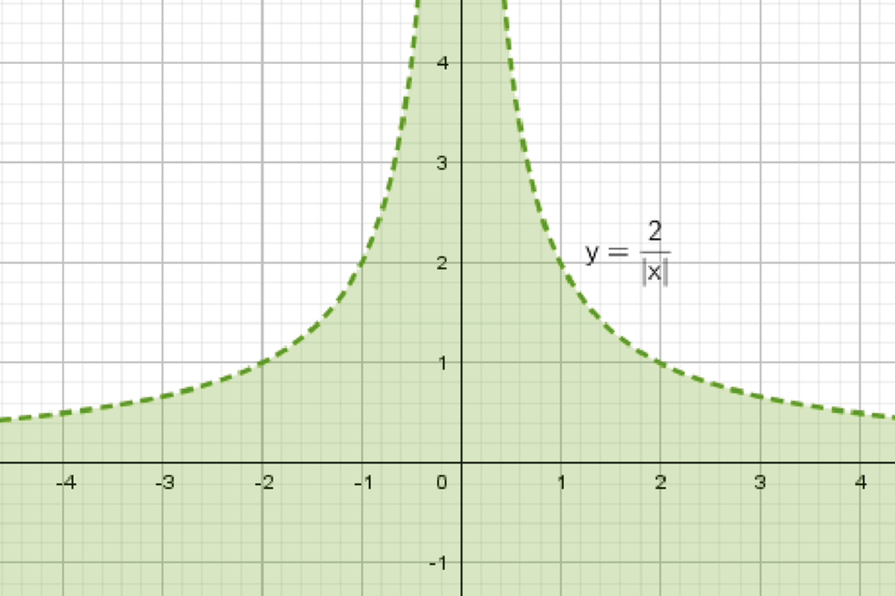 Рассмотрим неравенство \( y < \frac{2}{|x|} \), где \( x \neq 0 \) (так как знаменатель дроби не может быть равен нулю).