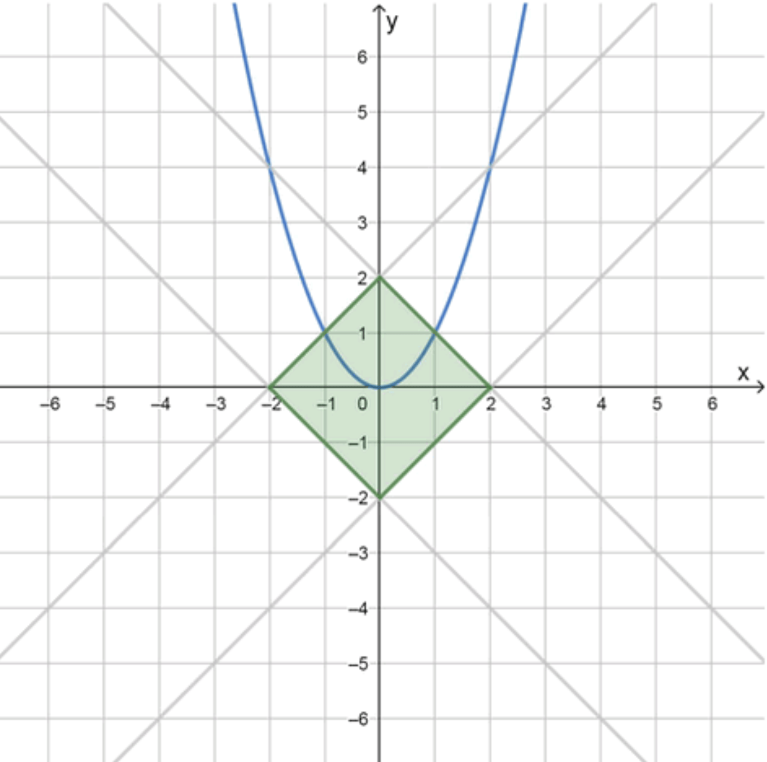 Эти точки пересечения находятся на прямых \( y = x + 2 \) и \( y = 2 — x \).