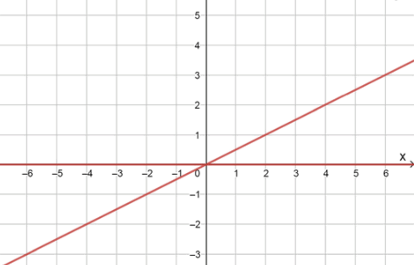 - Прямая \(y = \frac{1}{2}x\), проходящая через точки \((0, 0)\) и \((2, 1)\).