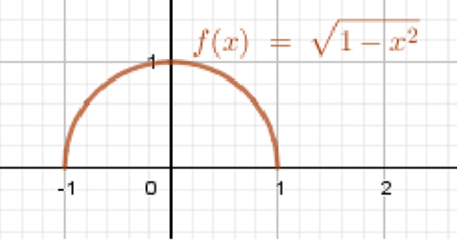 График уравнения представляет собой верхнюю полуокружность радиуса \( R = 1 \), ограниченную интервалом \(-1 \le x \le 1\).