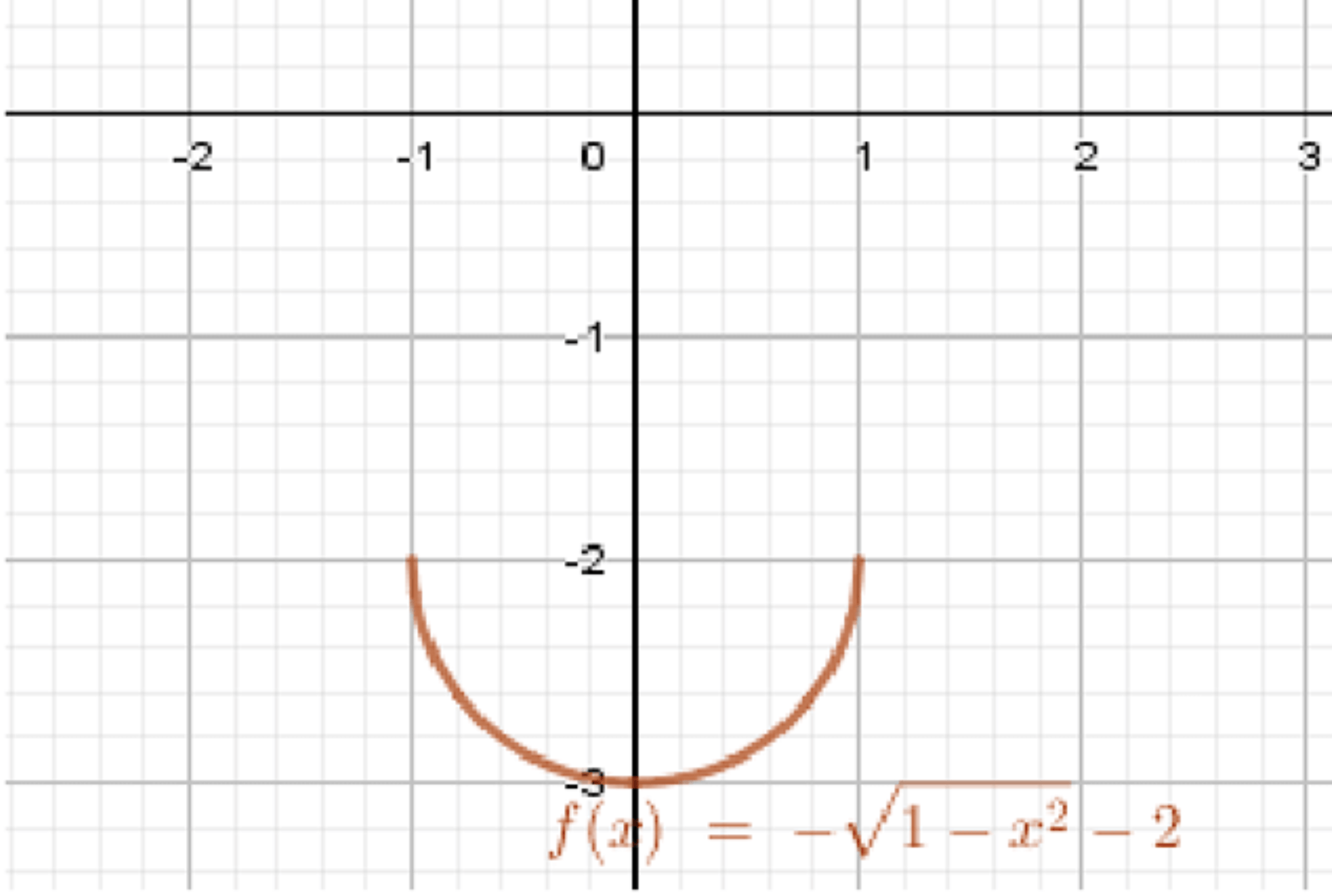 \( -(y + 2) = \sqrt{1 — x^2} \);