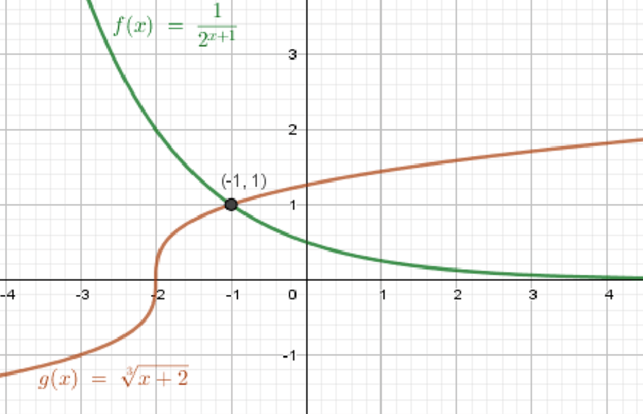 \( \left\{\begin{array}{l} y=2^{-x-1} \\ y=\sqrt[3]{x+2} ; \end{array}\right. \).
