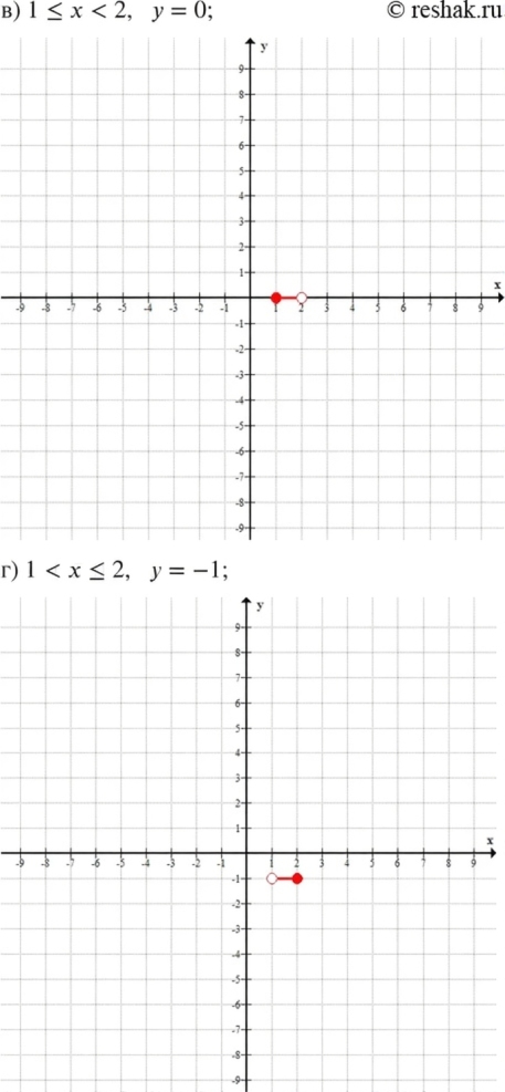 Аналогично: горизонтальный отрезок на \(y=-1\) от \((1,-1)\) до \((2,-1)\), обе точки включены.