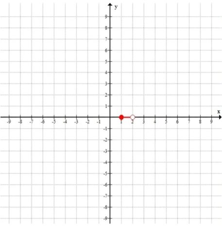 График: горизонтальный отрезок на оси \(y=0\) от \((1,0)\) до \((2,0)\), причём точка \((2,0)\) не входит (изображаем пустым кружком).