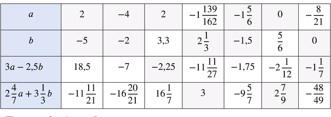 Вычислим значение выражения \(3a — 2{,}5b\):