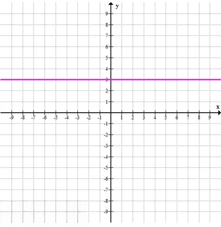 Это уравнение не содержит переменной \( x \), значит, график — горизонтальная прямая, параллельная оси \( Ox \), проходящая через \( y = 3 \).