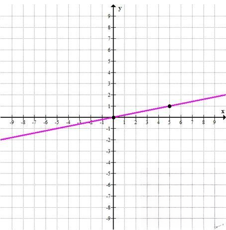 График — прямая, проходящая через начало координат и точку \( (5; 1) \). Уравнение можно записать как \( y = \frac{1}{5}x \).