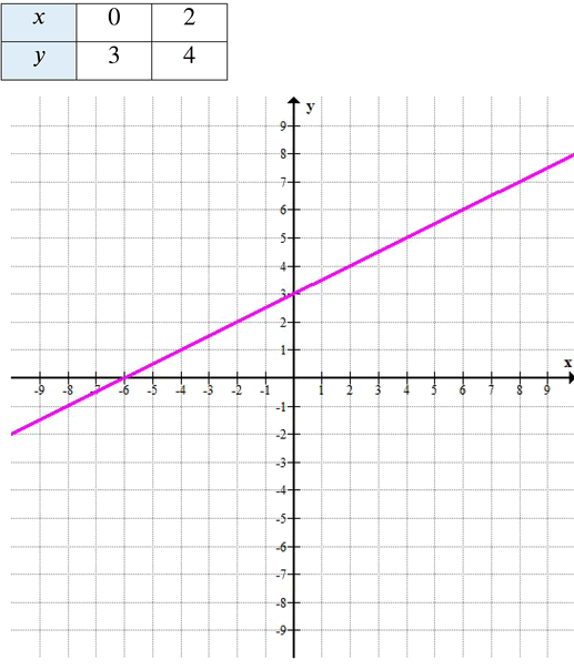 При \( x = 0 \): \( y = 0{,}5 \cdot 0 + 3 = 3 \) → точка \( (0; 3) \)
