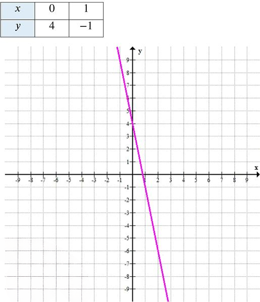 Постройте график заданной линейной функции, предварительно заполнив таблицу: а) у = 4х — 1; б) y = -5x + 4.