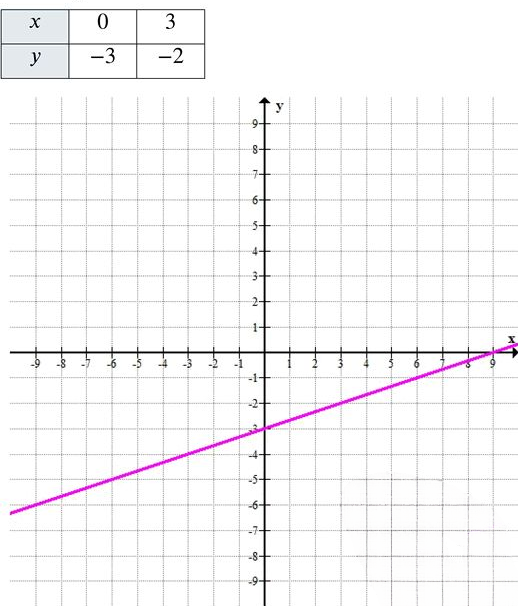 \( y = \frac{1}{3} \cdot 0 — 3 = -3 \) → точка \( (0; -3) \)