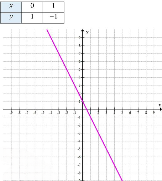 \( y = -2 \cdot 1 + 1 = -2 + 1 = -1 \) → точка \( (1; -1) \)