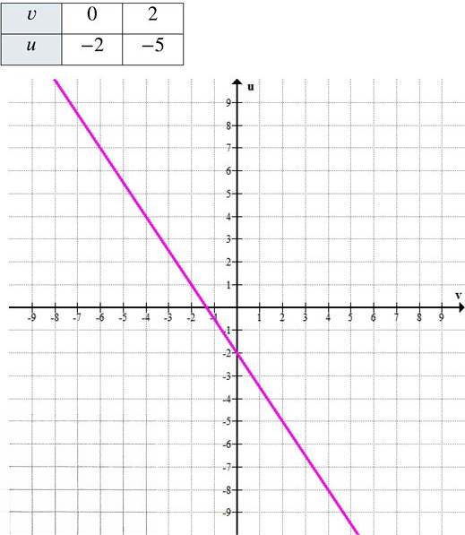 б) Уравнение: \( u = -1{,}5v — 2 \)