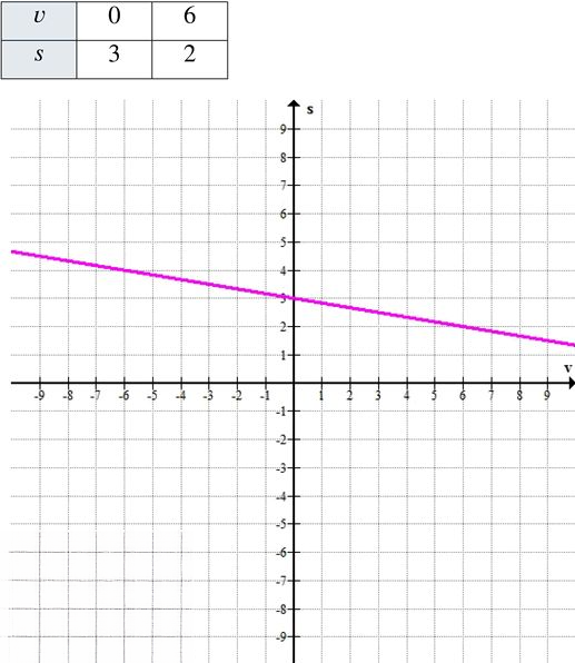в) Уравнение: \( s = -\frac{v}{6} + 3 \)