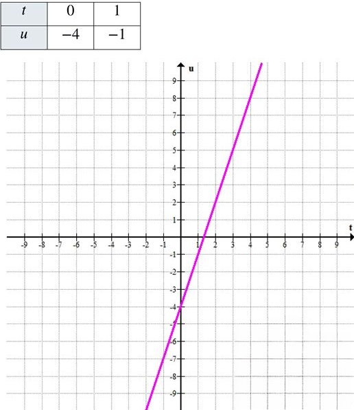\( u = 3 \cdot 1 — 4 = 3 — 4 = -1 \)