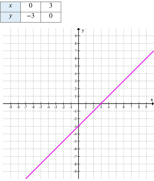 При \( x = 0 \): \( y = 0 — 3 = -3 \) → точка \( (0; -3) \)