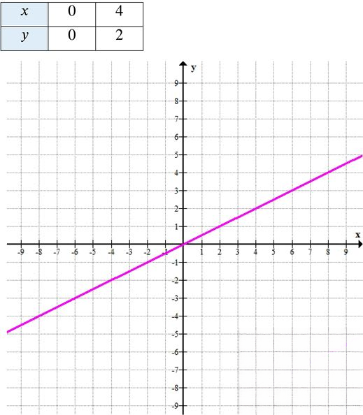\( y = 0{,}5 \cdot 4 = 2 \) → точка \( (4; 2) \)