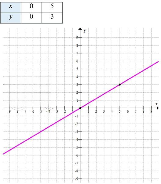 \( y = 0{,}6 \cdot 5 = 3 \) → точка \( (5; 3) \)