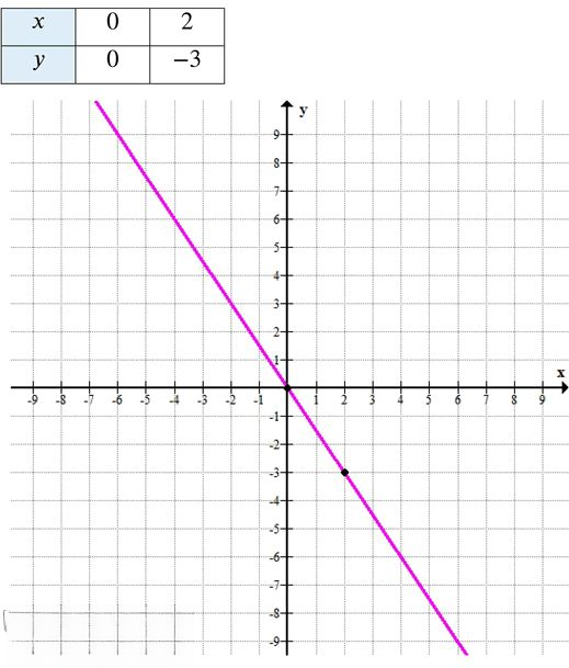 \( y = -1{,}5 \cdot 2 = -3 \) → точка \( (2; -3) \)