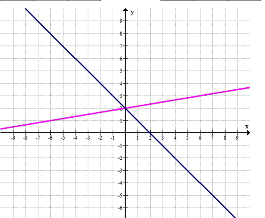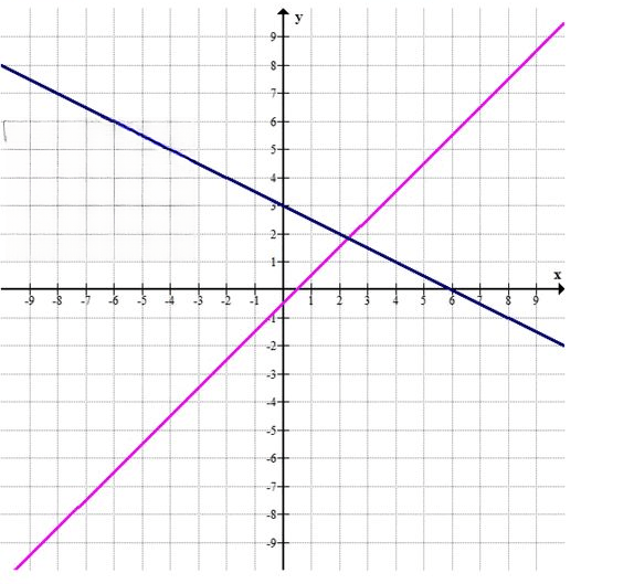 Решение: Данная система имеет единственное решение, которое можно найти графически. Графики двух прямых пересекаются в одной точке.
