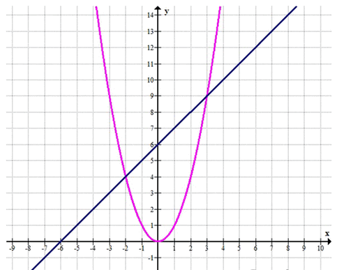 Точки пересечения: \(x_1 = 3\), \(x_2 = -2\)