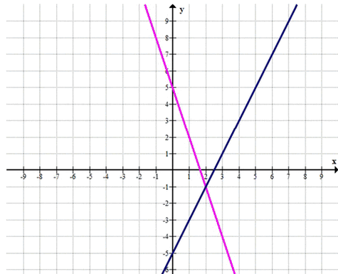 \(y_1(2) = -3 \cdot 2 + 5 = -6 + 5 = -1\)