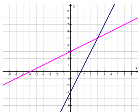 Значение аргумента (x) в точке пересечения: \( x = 4 \)