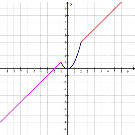 Как видно из графика, функция \(y = f(x)\) имеет два участка, где она является линейной (\(x < -1\) и \(x > 2\)), и один участок, где она является квадратичной (\(-1 \le x \le 2\)). Это позволяет легко находить значения аргумента для заданных значений функции.