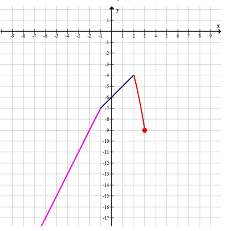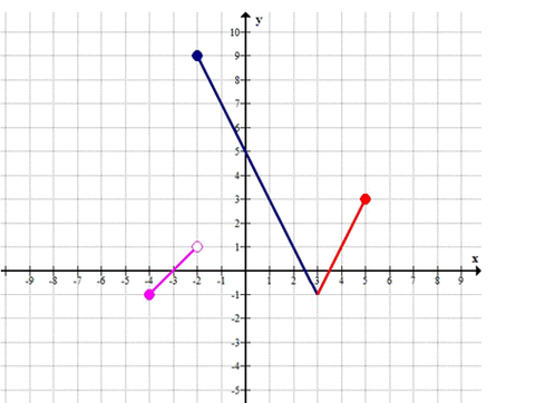 \( y = -x — 3, \quad -5 \le x < -1 \)
