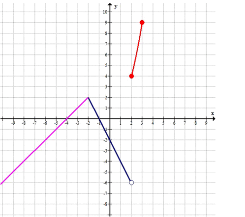 \( y = -2x — 2, \quad -2 \le x < 2 \)