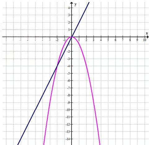 Графически находим точки пересечения параболы и прямой.