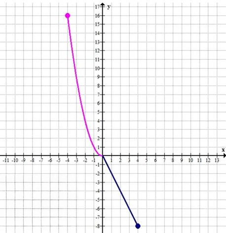 \( y = \begin{cases} x^2, & \text{если } -4 \le x \le 0 \\ -2x, & \text{если } 0 < x \le 4 \end{cases} \)