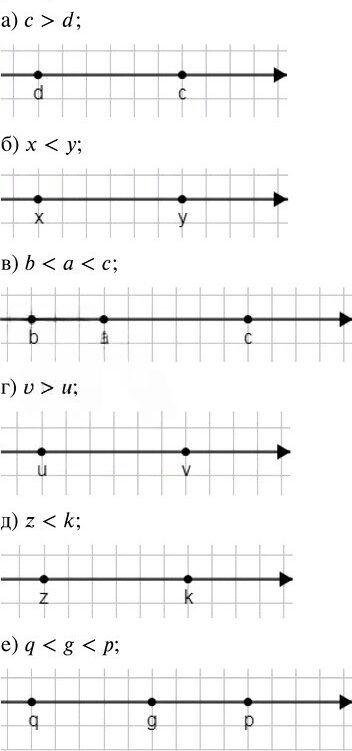 е) Число \(g\) больше числа \(q\), но меньше числа \(p\)