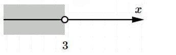 г) Неравенство означает, что в множество входят все числа, строго меньшие трёх. Число не входит (пустой кружок), луч направлен влево до . Это открытый луч.