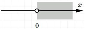 е) Неравенство задаёт множество всех положительных чисел. Ноль не входит (пустой кружок), луч направлен вправо. Это открытый луч.