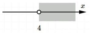 а) Неравенство означает, что в множество входят все числа, строго большие четырёх. Число не входит в множество. На координатной прямой это изображается как луч, начинающийся от точки (пустой кружок) и направленный вправо до . Такой промежуток называется открытым лучом.