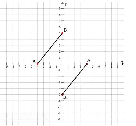 б) \( A(-4; 0), B(0; 5) \Longrightarrow A_1(4; 0), B_1(0; -5) \)