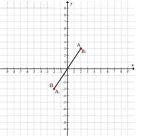г) \( A(2; 3), B(-2; -3) \Longrightarrow A_1(-2; -3), B_1(2; 3) \)