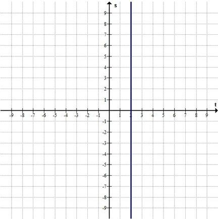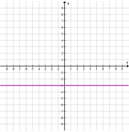 На графике — вертикальная прямая, совпадающая с осью \( s \) (осью ординат), так как значение \( t \) постоянно и равно нулю.