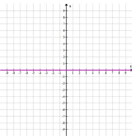 На графике это соответствует горизонтальной прямой, совпадающей с осью \( t \) (осью абсцисс), так как значение \( s \) постоянно и равно нулю.