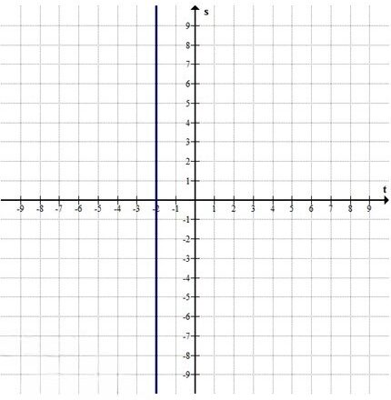 На графике это соответствует вертикальной прямой, проходящей через точку \( t = -2 \) на горизонтальной оси (ось \( t \)), параллельно оси \( s \).